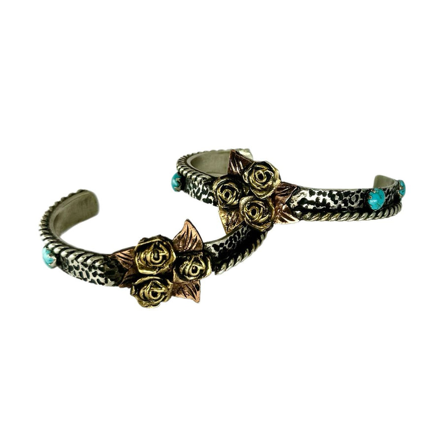 The Charley Bracelet is a handmade masterpiece that features stunning turquoise stones, expertly crafted in silver and copper. Each bracelet is 100% unique, adorned with intricate details and custom engravings. This fashionable accessory effortlessly enhances any outfit, making it perfect for both casual and special occasions.