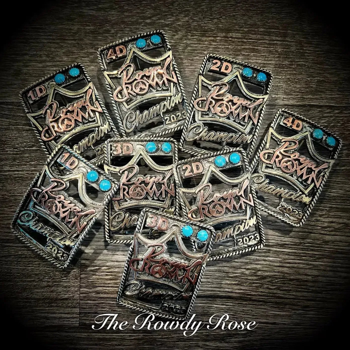 The Rowdy Rose specializes in the custom design of western belt buckles, jewelry, trophy awards and more. Customize any of our existing styles and add your own text, logo and unique flair for an item that you can find nowhere else on the market. All of our pieces are 100% hand-made and built to last a lifetime. Fill out the custom order form below to get started on your custom product design today!