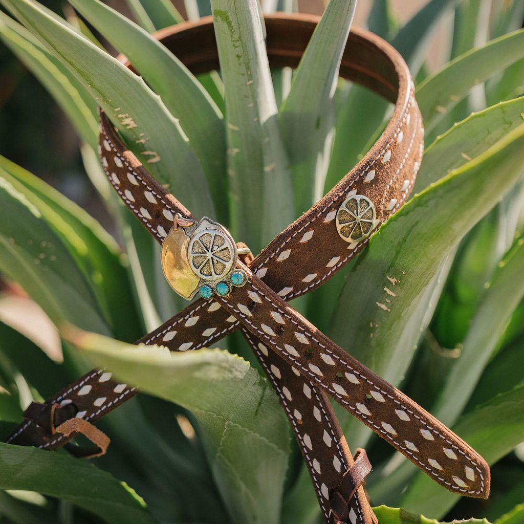 The Lemon Squeeze Headstall features a delightful western design with turquoise stones and intricate silver embellishments that make it 100% unique. Handmade with attention to detail, this custom accessory adds a fashionable twist to your equestrian gear, ensuring your horse stands out in style.