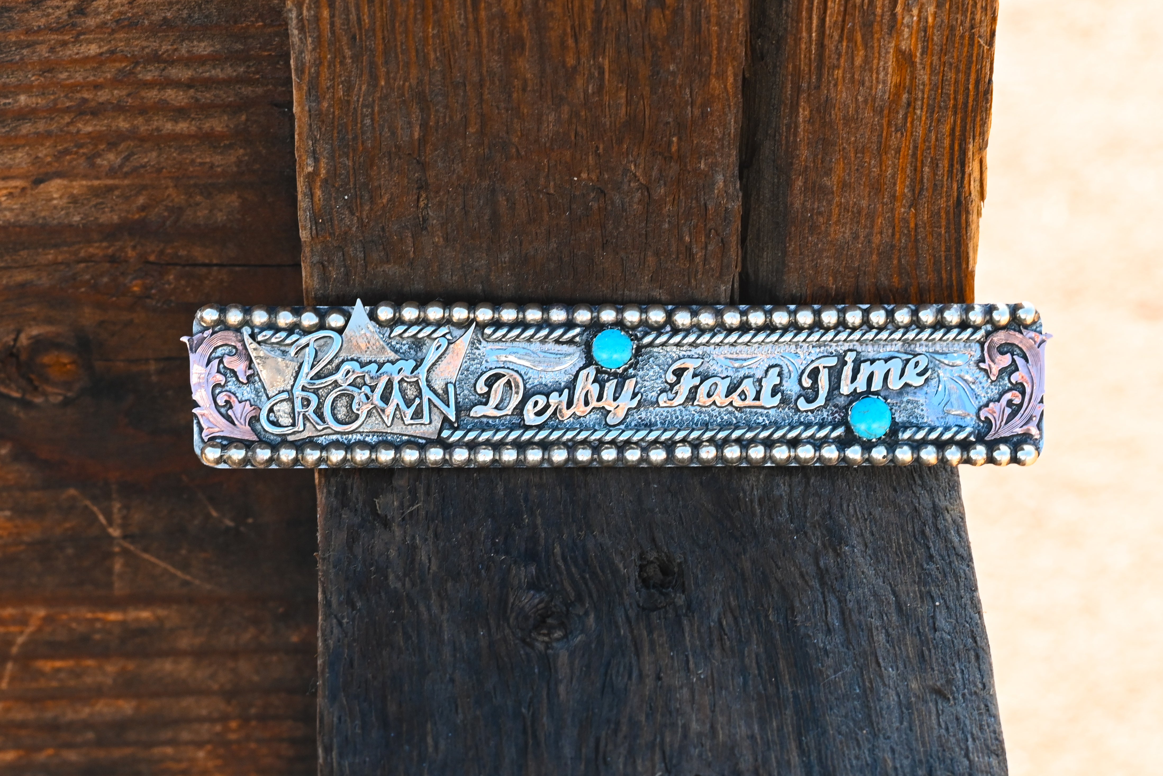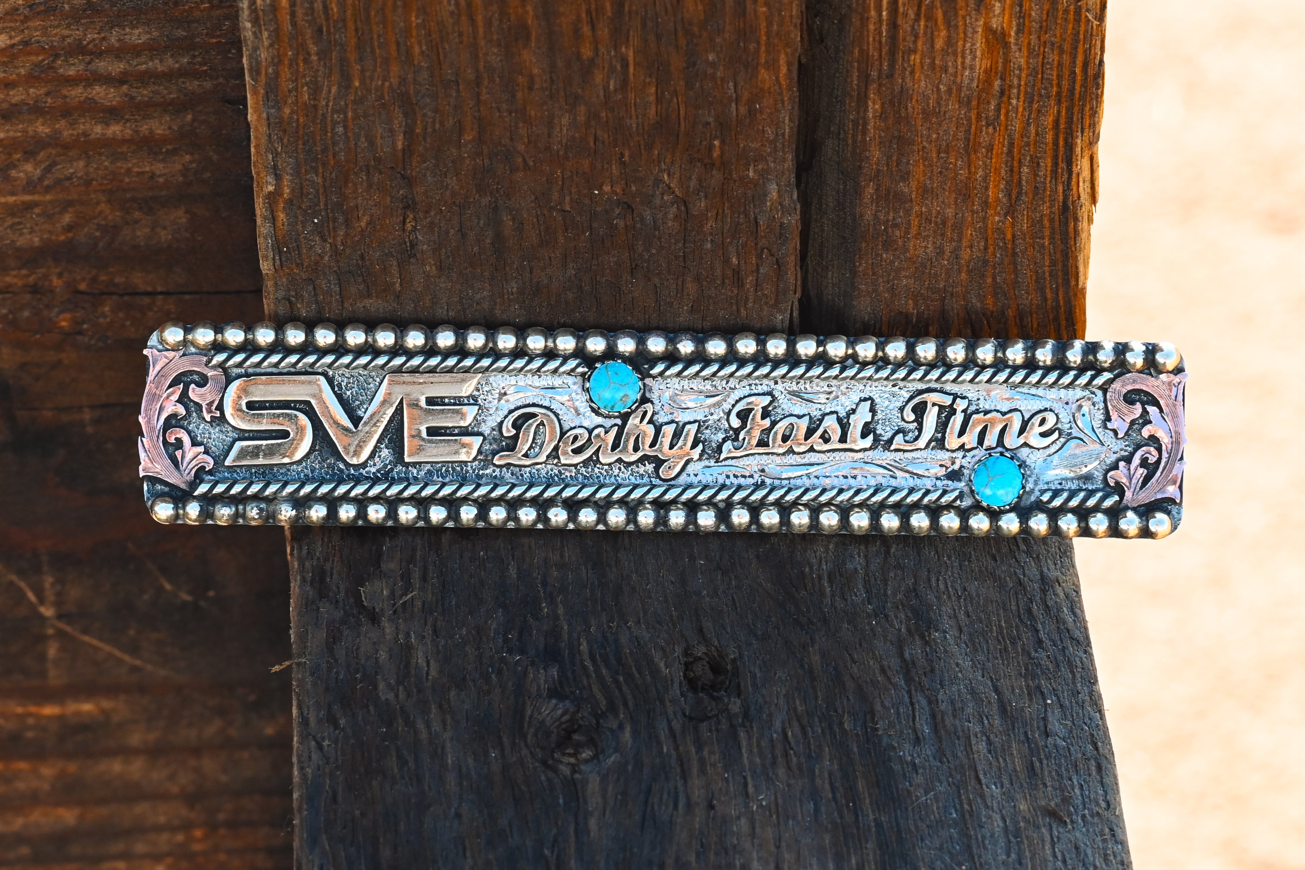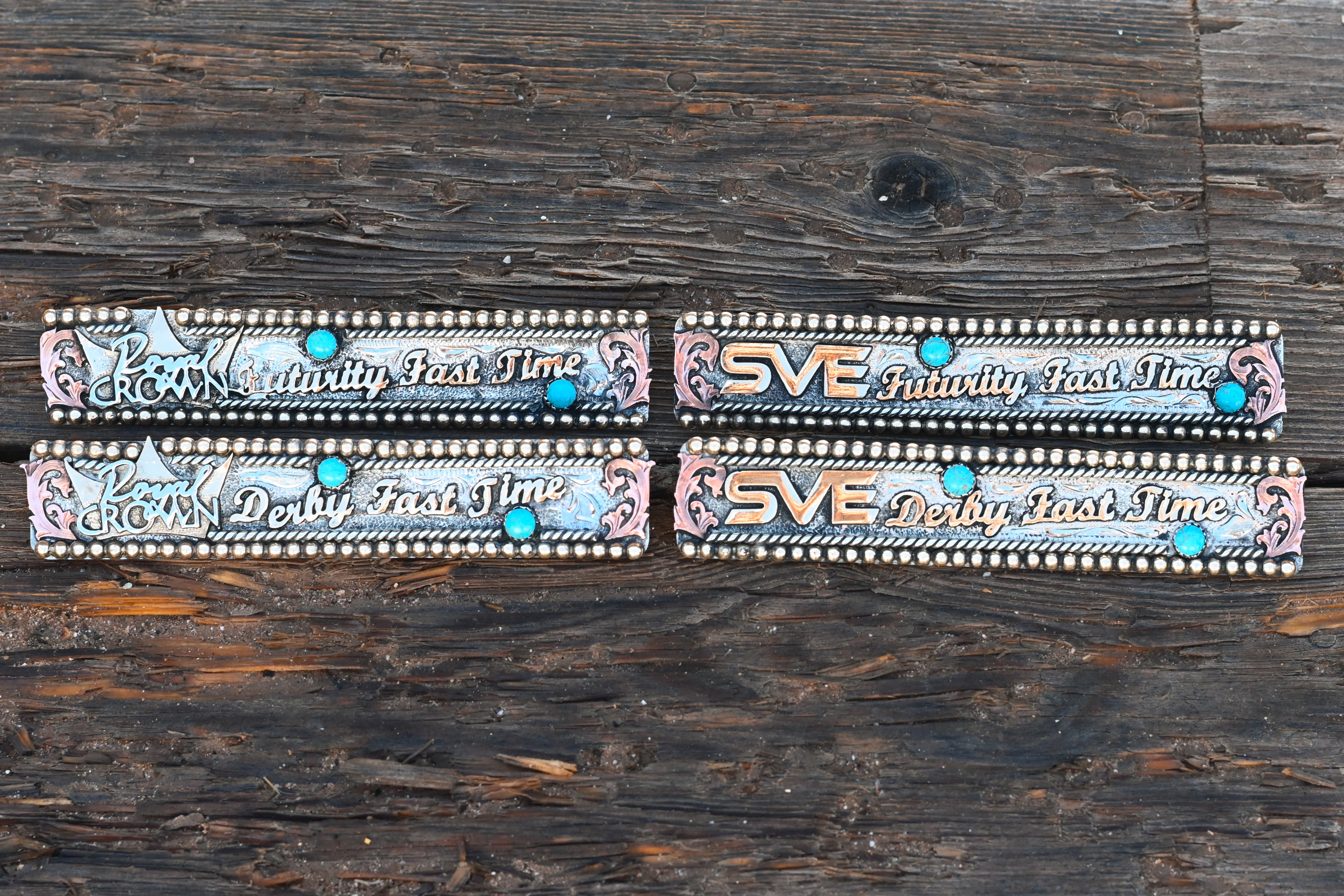 Discover the Halter Plate Style 03, a 100% unique and handmade western accessory featuring stunning turquoise stones and exquisite silver and copper details. Customizable with your choice of engraving, this fashion statement is perfect for those who appreciate personalized embellishments. Elevate your style with this one-of-a-kind piece today!