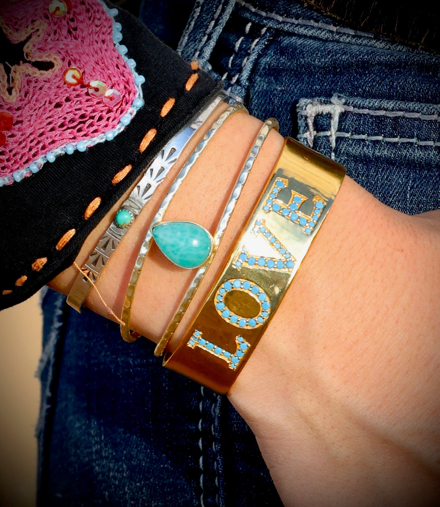 Spread the love with our playful Love You Big bracelet in shimmering gold. This charming piece features a bold message that says exactly what you mean—perfect for expressing affection to your favorite person or treating yourself to a little self-love reminder. The warm gold finish catches the light beautifully, making it an eye-catching accessory that works solo or stacked with other bracelets. Whether you're gifting it or keeping it close to your heart, this bracelet brings a touch of joy and sentiment to your everyday style.