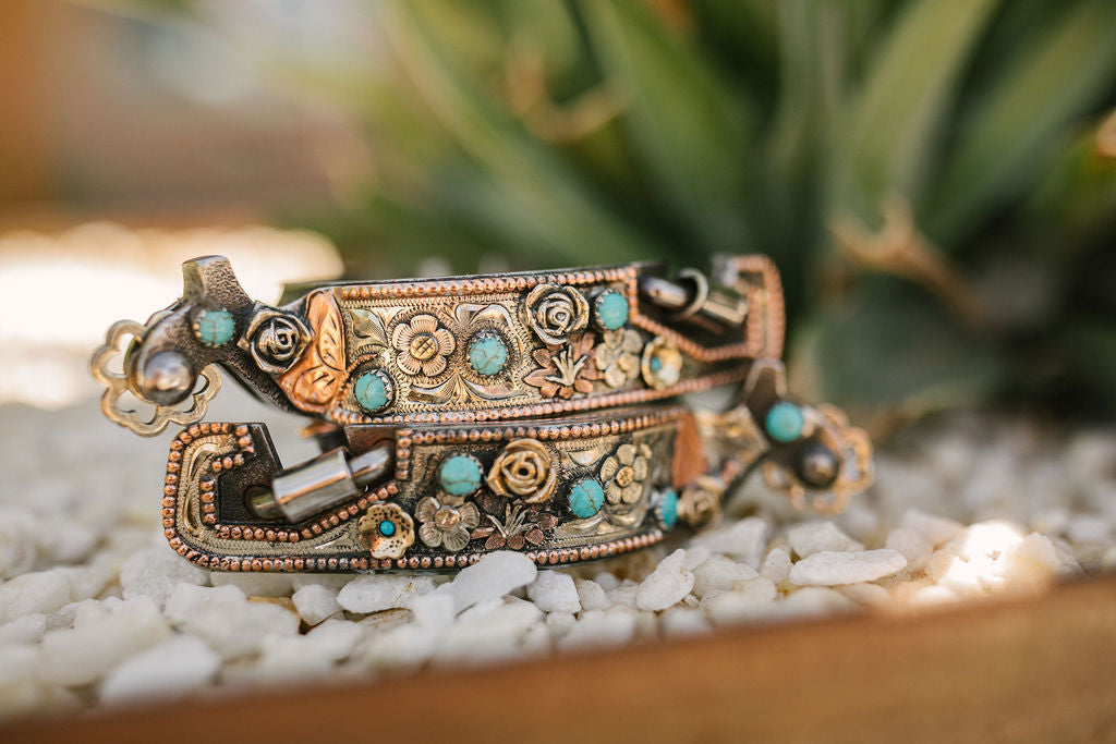 The Janice Spurs are a stunning blend of elegance and rugged charm, perfectly designed for those who appreciate both style and functionality. Crafted with meticulous attention to detail, these spurs feature a sleek silhouette that fits comfortably while adding a touch of sophistication to any cowboy ensemble. Their smooth, polished finish gleams softly, hinting at the craftsmanship that goes into each handmade piece. The unique design elements evoke a sense of tradition and adventure, making them not just an accessory, but a statement of character. Slip them on and feel the confidence that comes with owning a truly exceptional piece of gear.