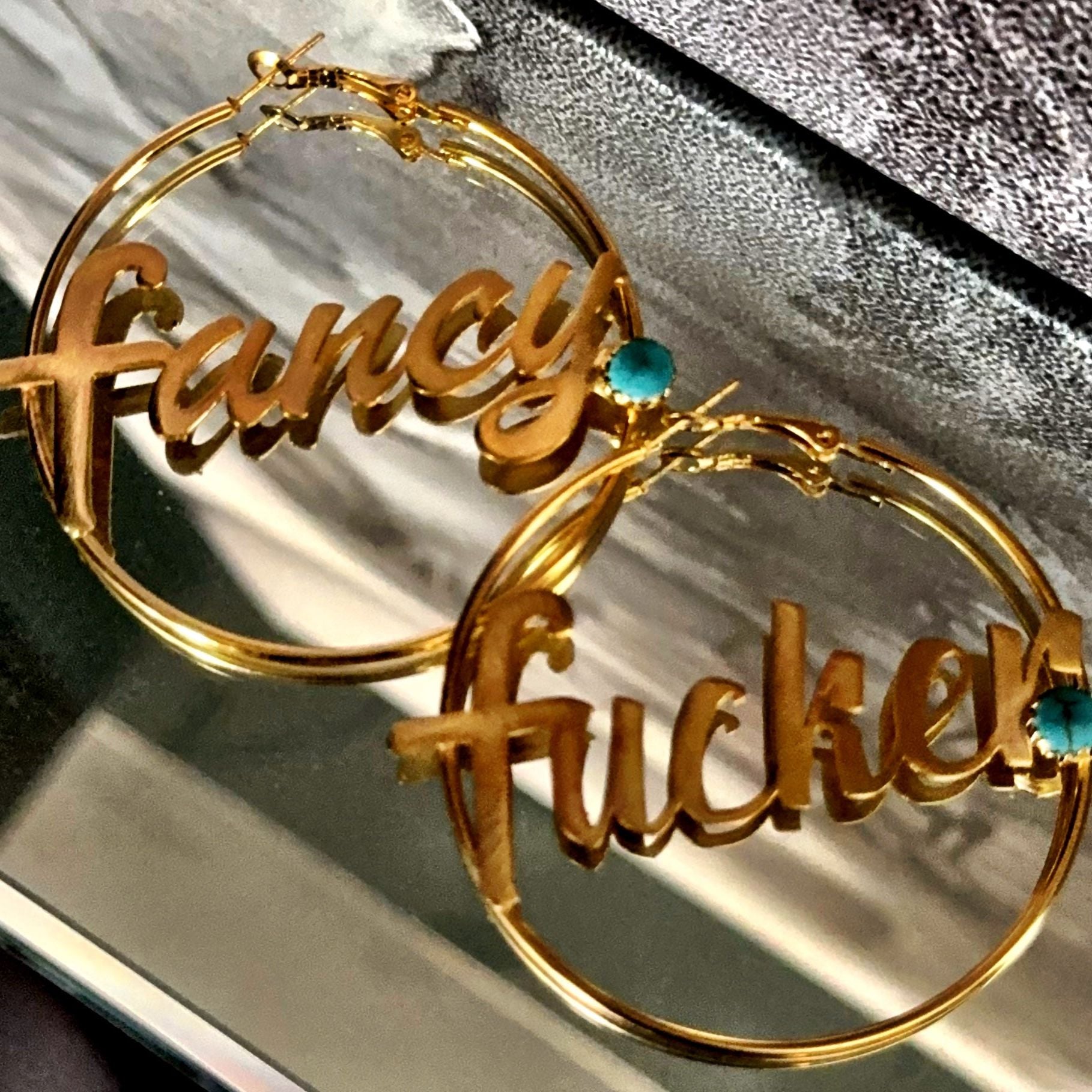 Introducing the Fancy Fkr Hoops, where edgy meets elegance! Handcrafted with southwestern flair, these hoops feature striking turquoise stones and intricate silver and copper details. Each pair is 100% unique, showcasing custom engravings and embellishments that reflect your bold personality. Elevate your fashion game and embrace your inner fancy!