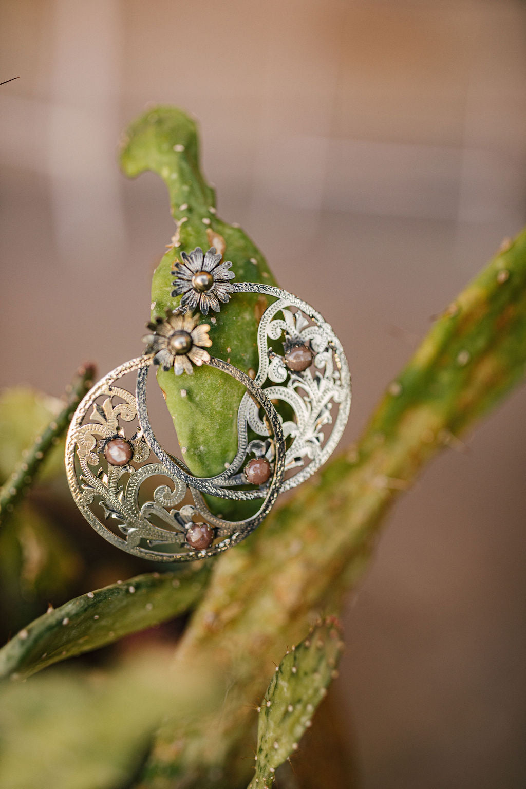 Experience the charm of our handmade Filagree Stud Earrings, featuring stunning turquoise stones set in custom silver and copper designs. Each pair is 100% unique, showcasing intricate details and artistic engravings. Perfect for any fashion-forward individual, these earrings are a beautiful example of western style and elegance.