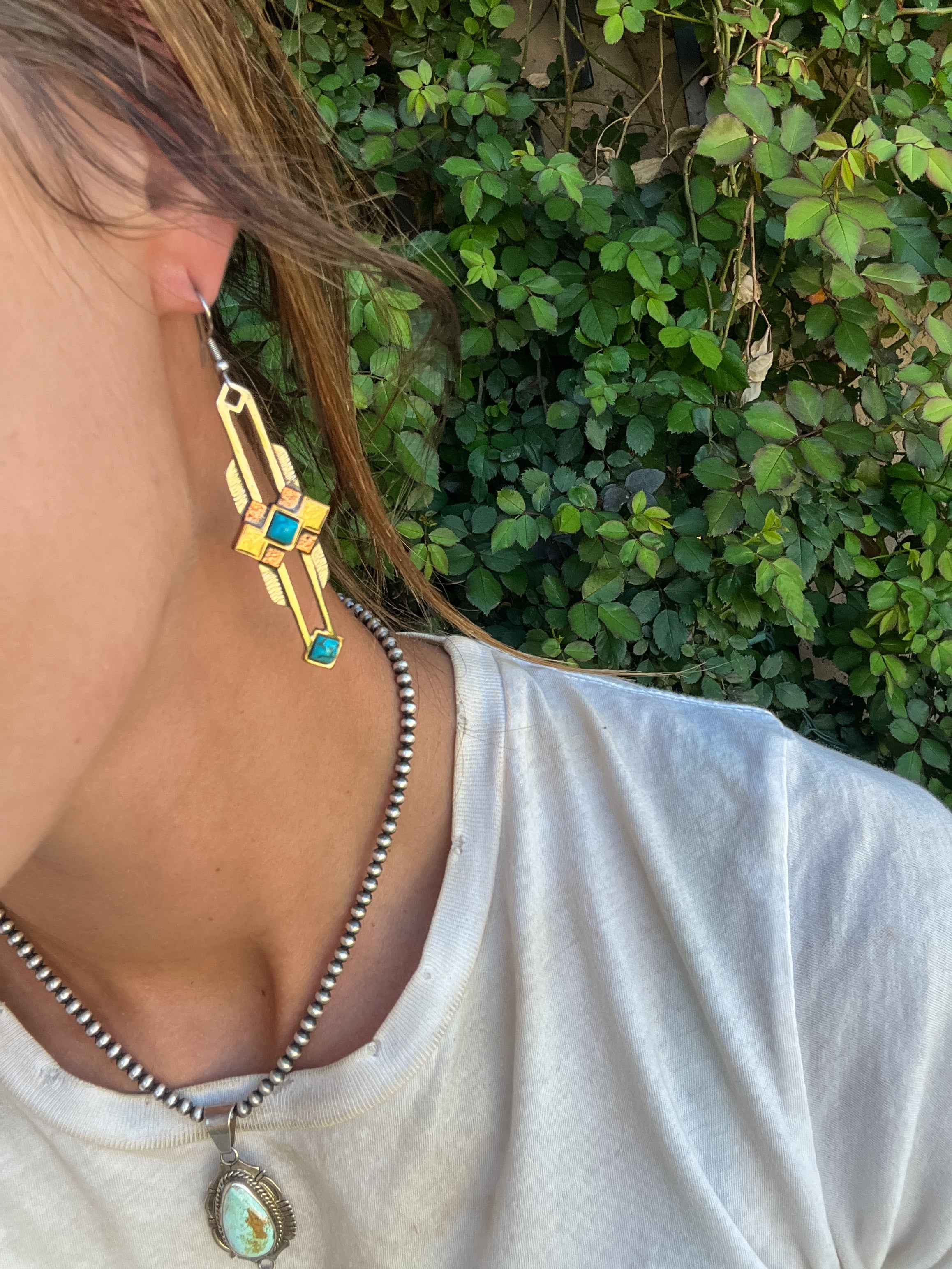 Discover the allure of our Geometric Bar Earrings, a stunning blend of western charm and modern elegance. Handcrafted with care, each pair features vibrant turquoise stones, custom engravings, and intricate silver and copper details. 100% unique, these earrings are the perfect fashion statement to express your individuality.