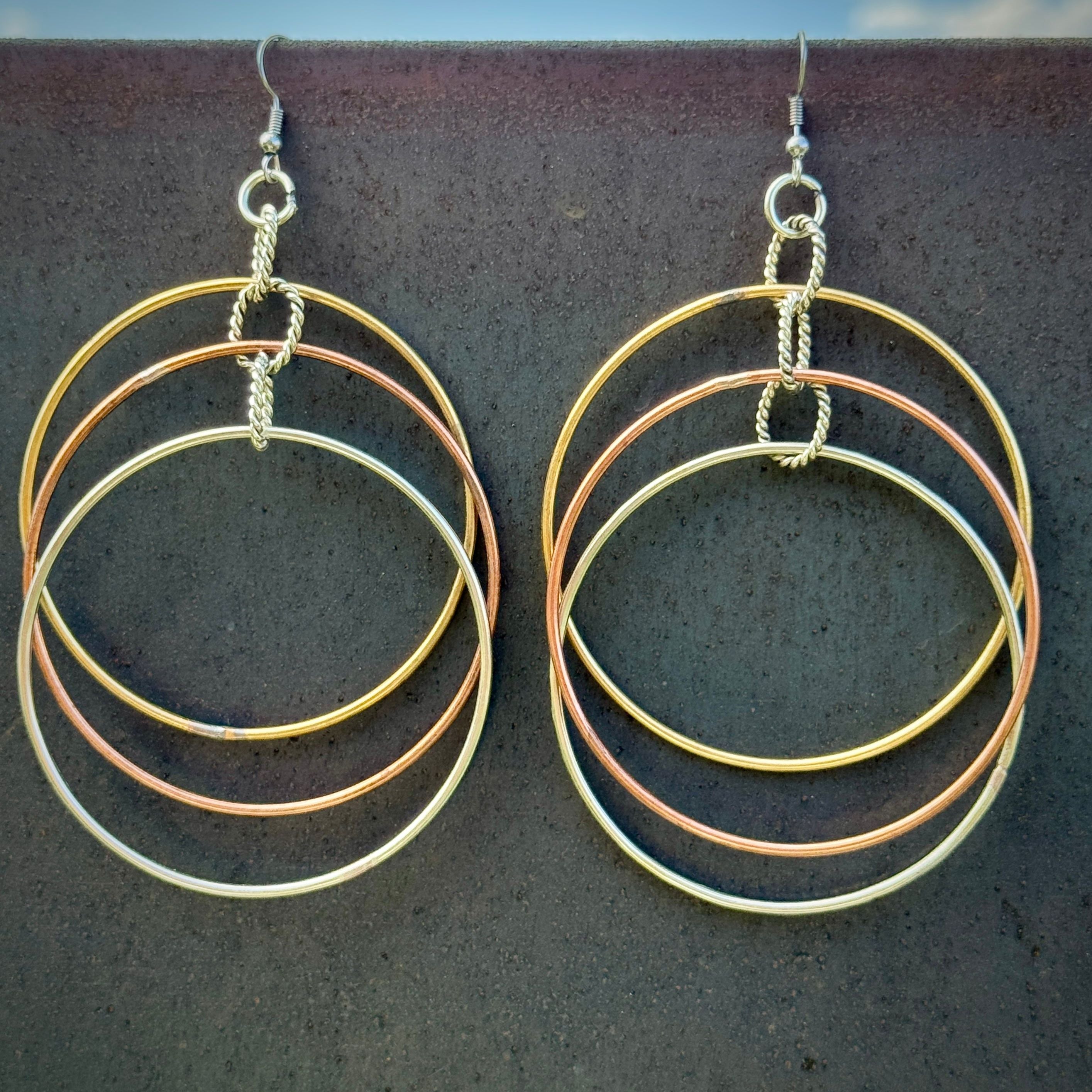 Discover our stunning Triple Hoop Earrings, a captivating blend of western flair and modern fashion. Handcrafted with love, these 100% unique earrings feature intricate details, mesmerizing turquoise stones, and elegant silver and copper embellishments. Perfect for any occasion, they elevate your style effortlessly. Embrace individuality and make a statement today!