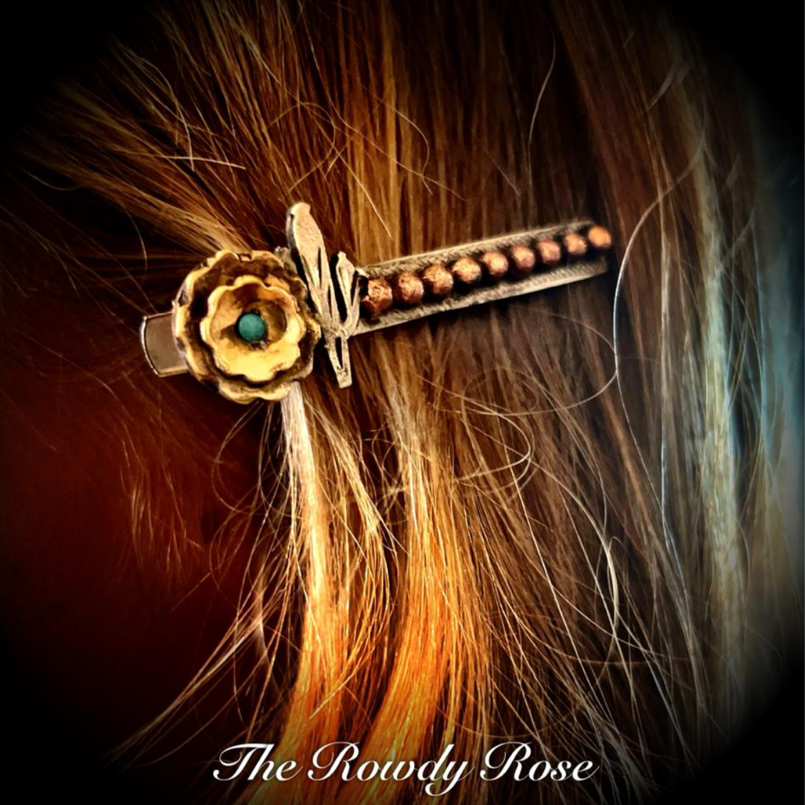 Introducing the Cactus Hair Clip, a 100% unique accessory that combines western charm with fashion-forward design. Handmade with intricate details, this vibrant clip features captivating turquoise stones that enhance its playful elegance. Elevate your hairstyle with this custom piece, perfect for adding a touch of nature-inspired beauty to any look.