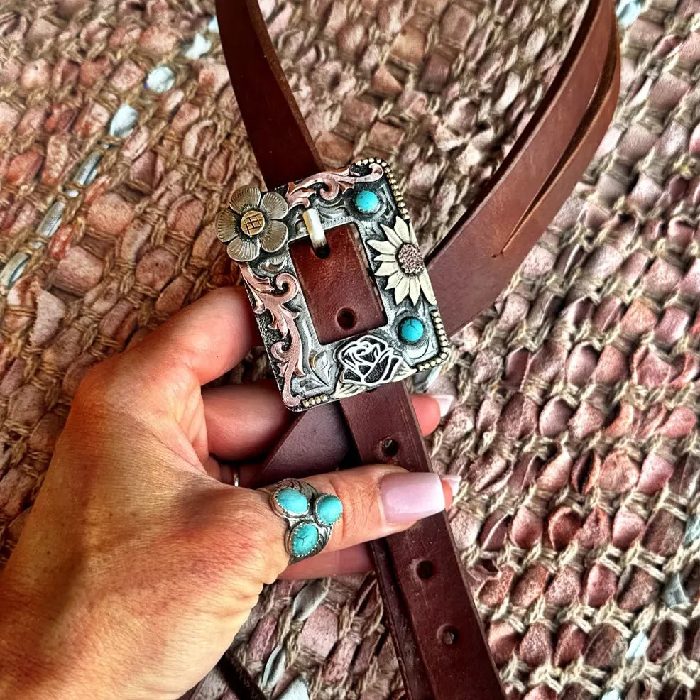The Carrie Oiled Leather Headstall combines western elegance with functionality, featuring custom engravings and unique embellishments. Handmade from rich, supple leather, this headstall showcases intricate details and a luxurious finish, offering both style and comfort for every ride. Elevate your equestrian experience with this stunning, 100% unique accessory.