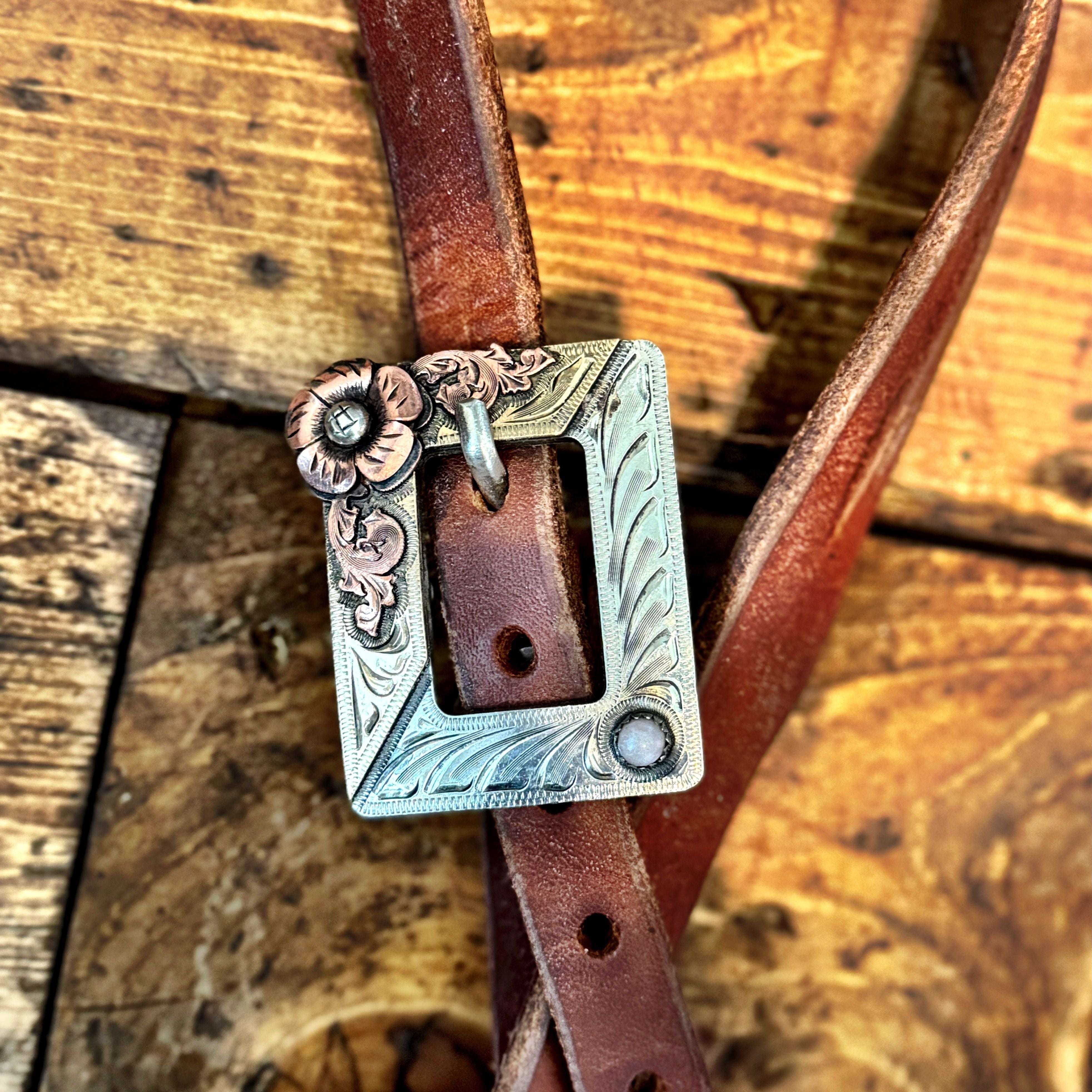 Introducing the Whitney Headstall, a stunning piece that combines western charm with modern fashion. Handcrafted with care, this custom headstall features intricate details, 100% unique turquoise stones, and exquisite silver and copper embellishments. Show off your style and make a statement with this elegant accessory.