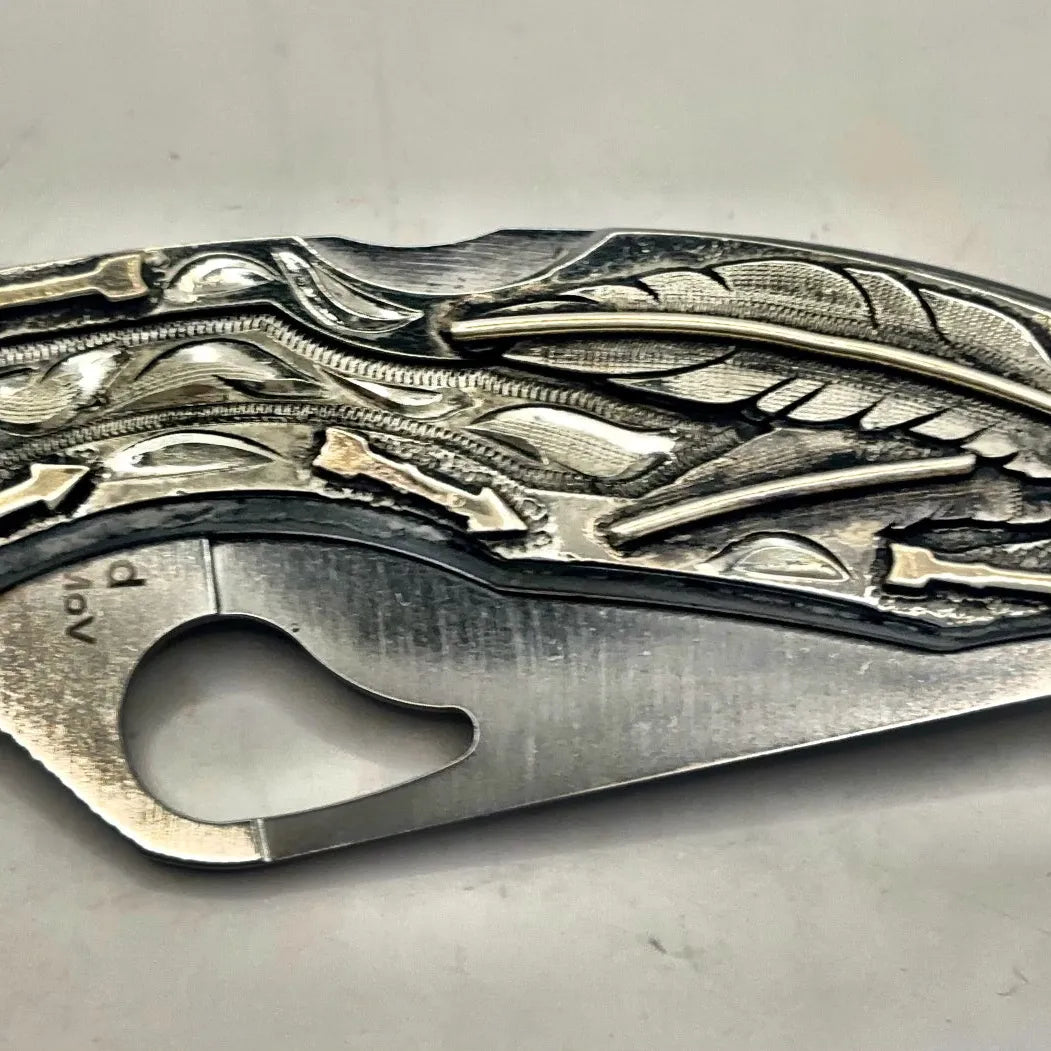 The Wynona Knife is a stunning blend of western charm and modern functionality, featuring a handmade design with intricate details and custom engraving. Adorned with turquoise stones, silver, and copper embellishments, this 100% unique knife is not just a tool, but a fashion statement for any culinary or outdoor adventure.