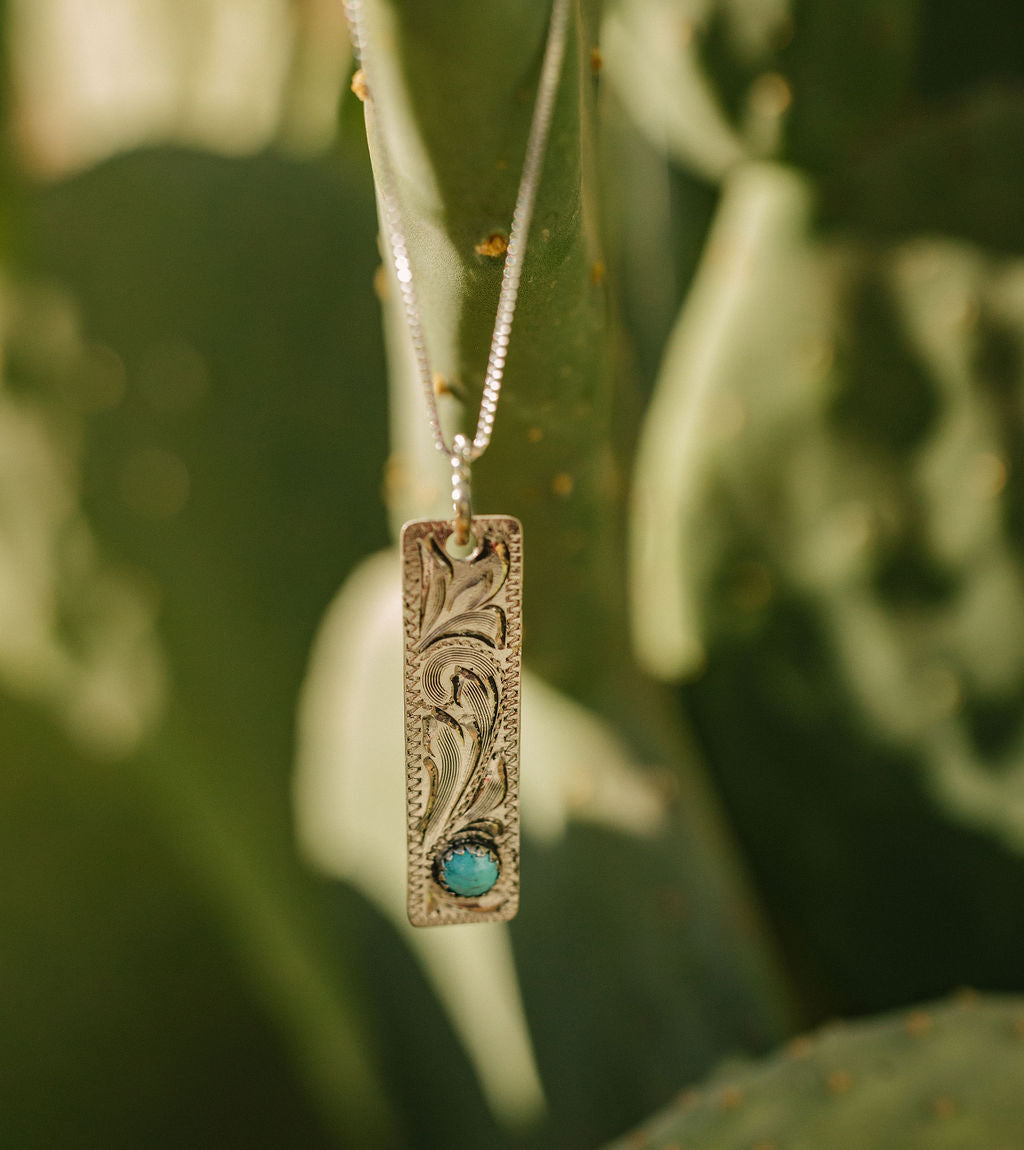 Discover the captivating charm of our Engraved Drop Turquoise Necklace, a handmade masterpiece featuring vibrant turquoise stones that add a western flair to any outfit. Custom engravings and elegant silver and copper embellishments make each piece 100% unique, perfect for fashion lovers who appreciate intricate details.