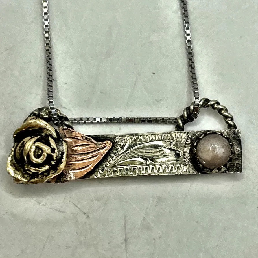 The Mabel Bar Necklace is a handmade, custom piece that exudes a fashionable charm with its sleek bar design. Crafted from silver and embellished with unique details, this necklace is perfect for layering or standalone elegance. Each piece is 100% unique, making it a special gift or a statement accessory for any occasion.