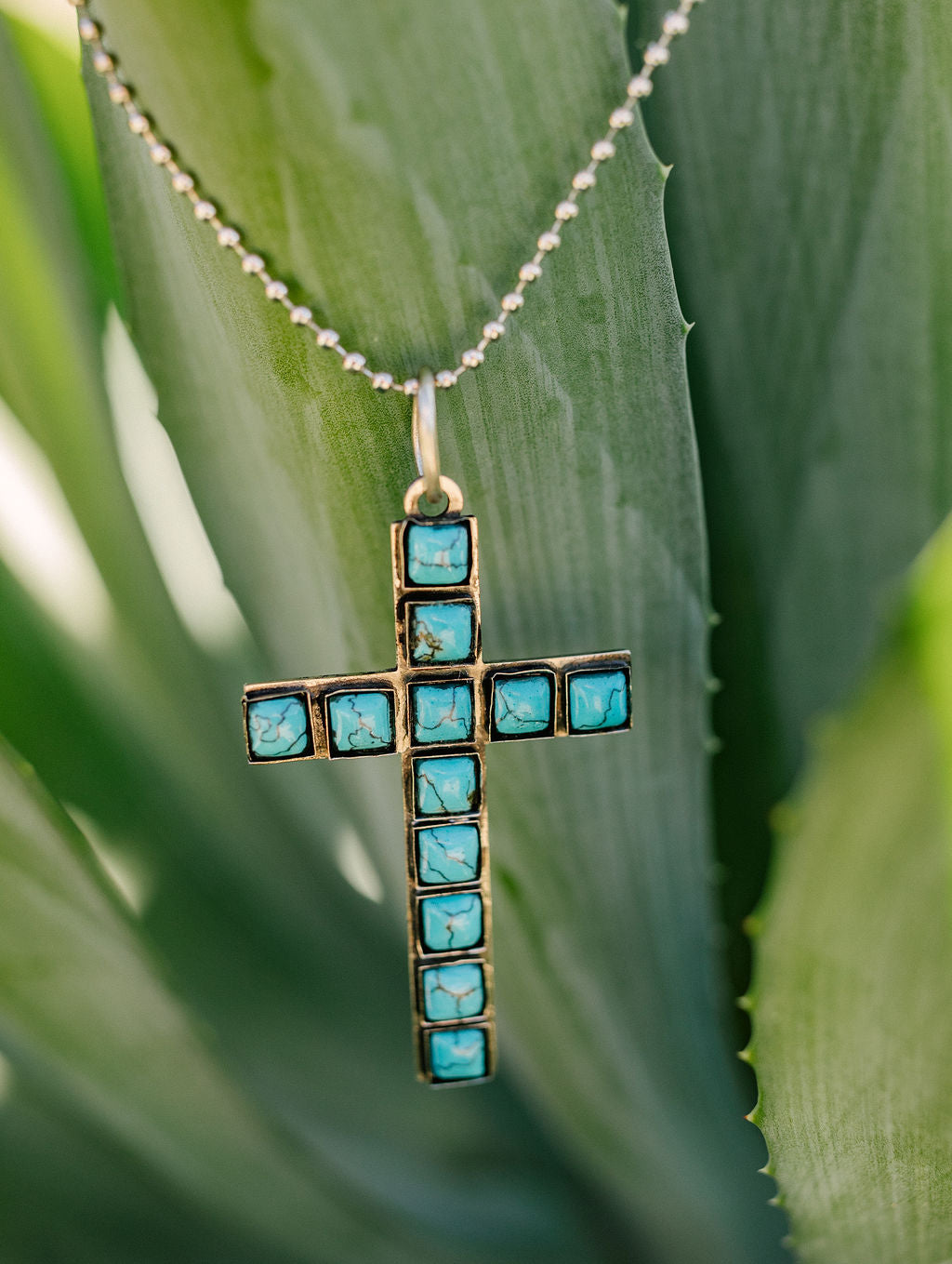 Discover the beauty of our Turquoise Cross Pendant, a 100% unique and handmade fashion statement. Adorned with intricate details and custom engravings, this pendant features vibrant turquoise stones set in silver and copper. Embrace your individuality with this exquisite western accessory that embodies elegance and spirituality.