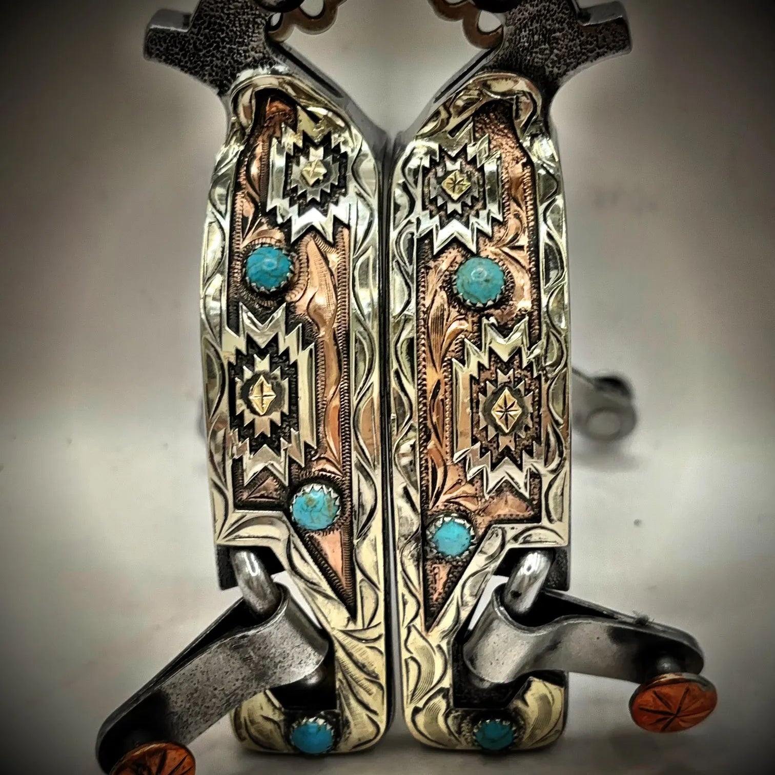 Elevate your riding experience with our exquisite Dakota Spurs. Crafted for both functionality and style, these spurs are the perfect accessory for any equestrian enthusiast. Each pair is meticulously handmade, ensuring a unique and high-quality product that resonates with the spirit of the West. Imagine the feeling of connection and confidence as you ride, the robust materials offering durability alongside a striking design that complements your riding gear. With the Dakota Spurs, ride with flair and embrace your journey, whether you're an experienced rider or just starting out.