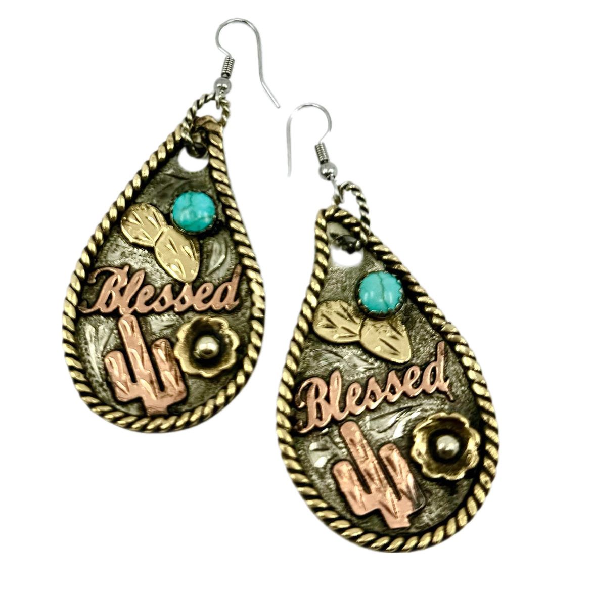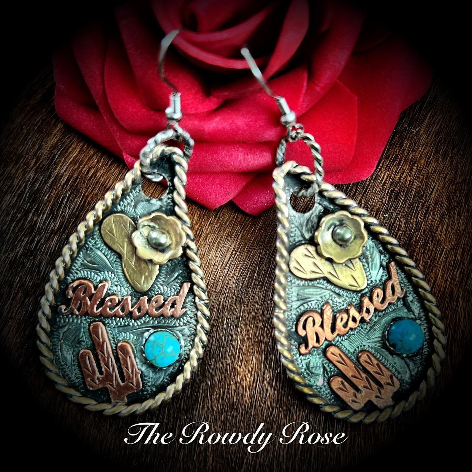 Discover the Blessed Earrings, a stunning blend of fashion and elegance featuring unique designs embellished with turquoise stones. Handmade with care, each pair showcases intricate details and custom engravings in silver and copper, making them a 100% unique accessory that enhances your style and spirit.