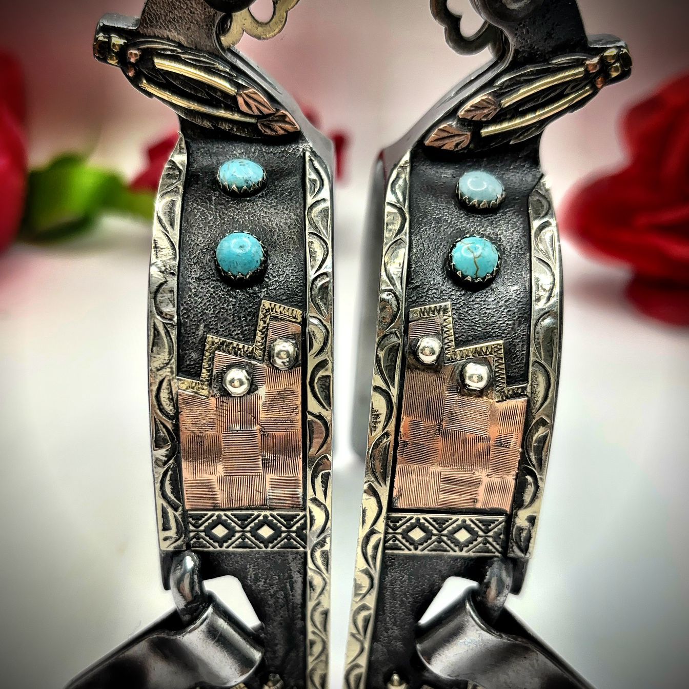 The Pendleton Spurs are not just accessories; they are a statement of individuality and craftsmanship. The detailed engravings, combined with the rich textures of silver and copper, create a stunning visual appeal that is perfect for any occasion. Whether you're a rodeo enthusiast or simply love western aesthetics, these spurs will elevate your look.