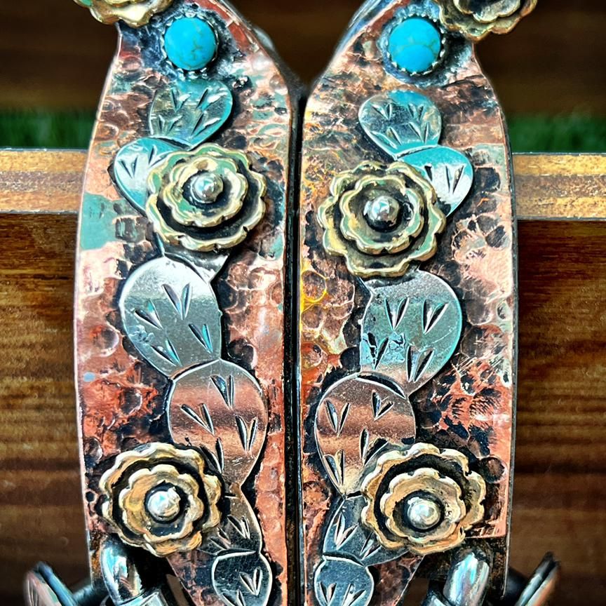 Experience the charm of the West with the Sedona Spurs, a 100% unique accessory handcrafted with turquoise stones and detailed engravings. Made from durable silver and copper, these custom spurs combine fashion with functionality, adding a touch of sophistication to any outfit. Step into your adventure today!