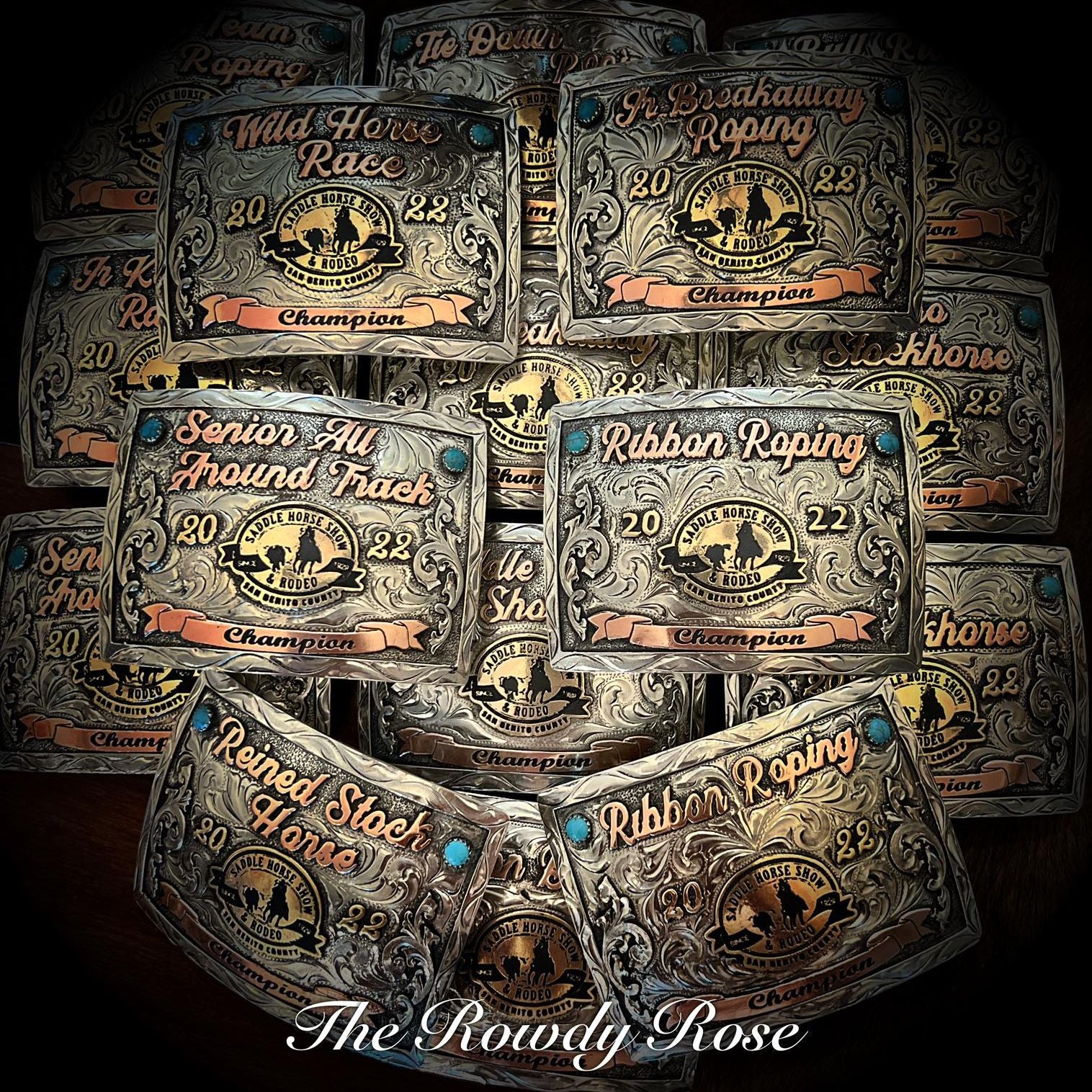 The Rowdy Rose specializes in the custom design of western belt buckles, jewelry, trophy awards and more. Customize any of our existing styles and add your own text, logo and unique flair for an item that you can find nowhere else on the market. All of our pieces are 100% hand-made and built to last a lifetime. Fill out the custom order form below to get started on your custom product design today!