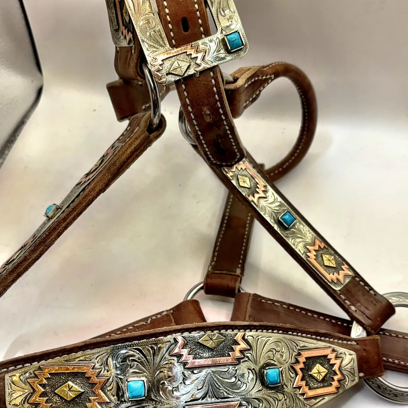 The Cheyenne Halter is a captivating piece that combines western charm with modern fashion. Handmade with intricate details, this halter features stunning turquoise stones and unique embellishments. Its custom design in silver and copper ensures you stand out, making it a 100% unique addition to your wardrobe.