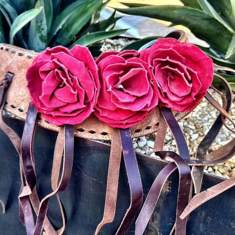 Elevate your western fashion with our Natural Buckstitch Rose Tripping Collar, adorned with vibrant hot pink leather roses. This handmade, custom piece is 100% unique, featuring exquisite details and embellishments that reflect your distinctive style. Perfect for any occasion, it’s a stunning blend of elegance and edge that you won’t want to miss. Order yours today to stand out in the crowd!