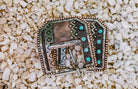 Elevate your western fashion with the Pendleton Back Cinch Buckles, featuring stunning turquoise stones and intricate engravings. Each handmade buckle is crafted for uniqueness, offering custom embellishments in silver and copper. Stand out with a 100% unique accessory that blends style and functionality perfectly.
