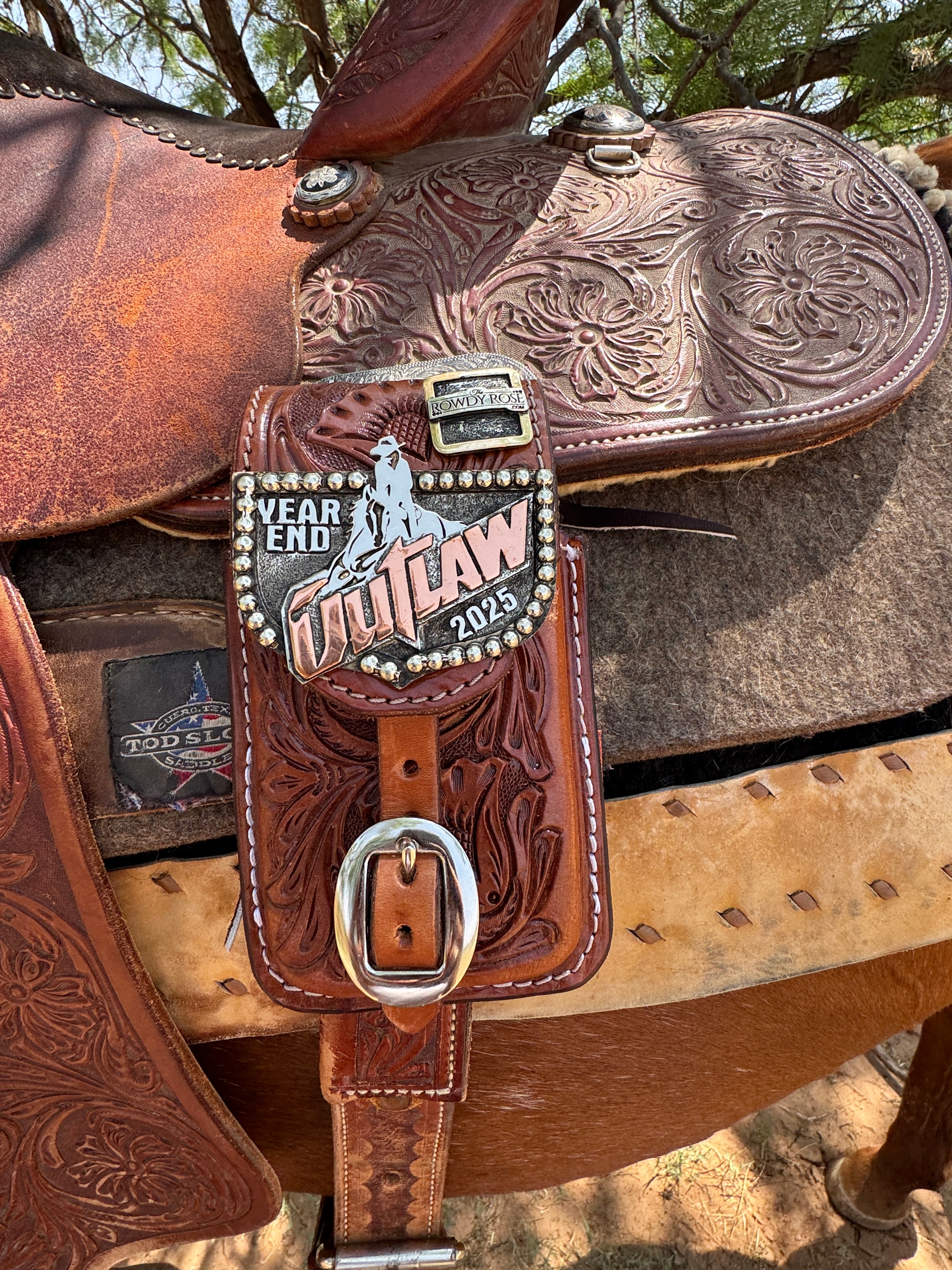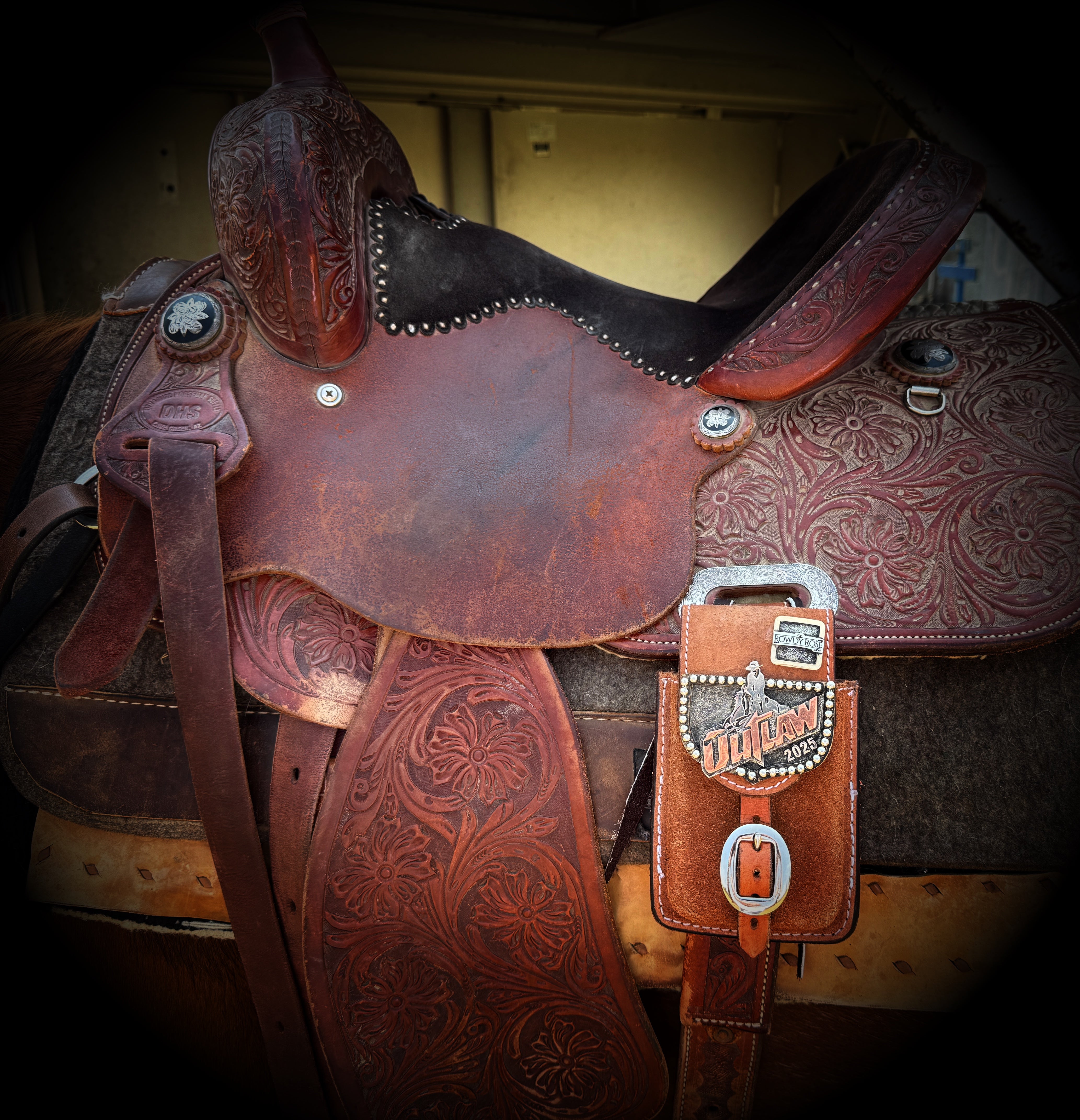 Leather saddle bag that will hold your cell phone while you ride. Customize it however you'd like.