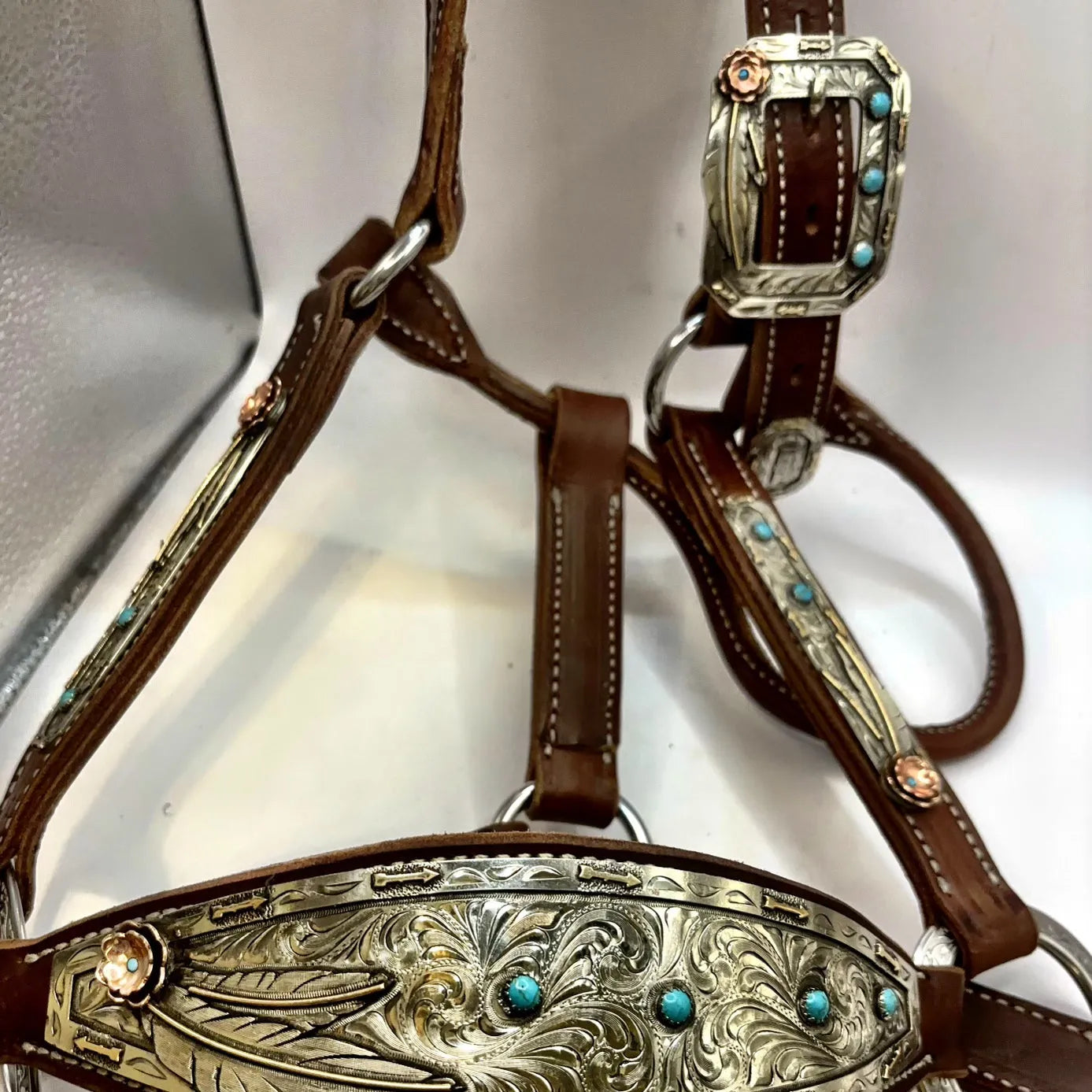 The Wynona Halter is a 100% unique fashion piece, handmade with exquisite details and embellishments. Featuring engravings and a stylish western flair, this custom design showcases beautiful turquoise stones set in silver and copper. Perfect for expressing your individuality, it’s a sophisticated addition to any wardrobe.